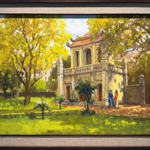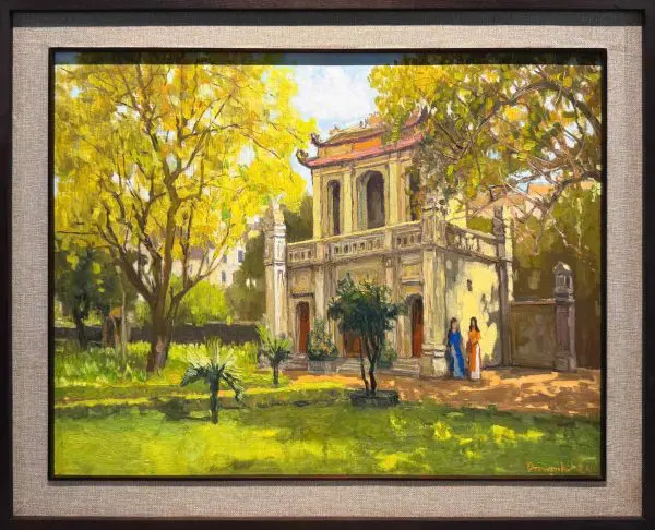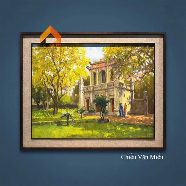 “Chiều Văn Miếu” là tranh sơn dầu sáng tác độc bản và có giấy tác quyền của họa sĩ Lân Đức Mạnh.
