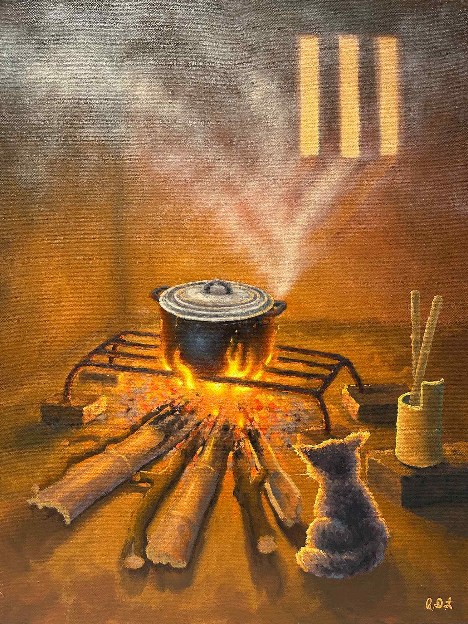 “Cơm chiều 3” là tranh sơn dầu sáng tác độc bản của họa sĩ Quốc Đạt.