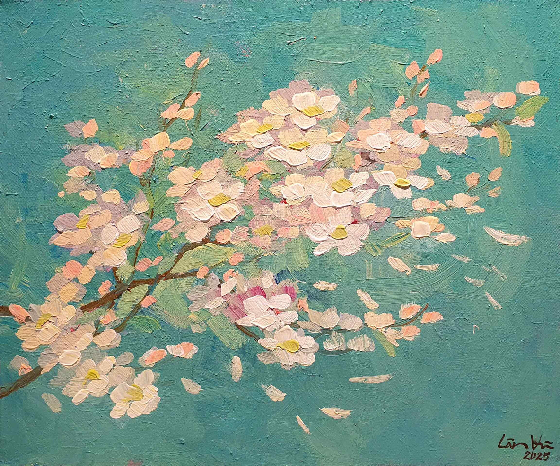 “Những mùa xuân nho nhỏ No.02” là tranh sơn dầu sáng tác độc bản của họa sĩ Lân Vũ.