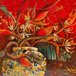 Tranh trừu tượng của họa sĩ Lân Vũ luôn có những dấu hiệu thẩm mỹ rất riêng. Những sắc độ màu chuyển biến linh hoạt rất cuốn. Một nguồn năng lượng này như đánh thức cả căn phòng.
