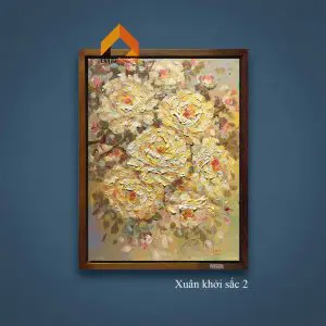“Xuân khởi sắc 2” là tranh sơn dầu sáng tác độc bản và có giấy tác quyền của họa sĩ Lê Hữu Thắng.