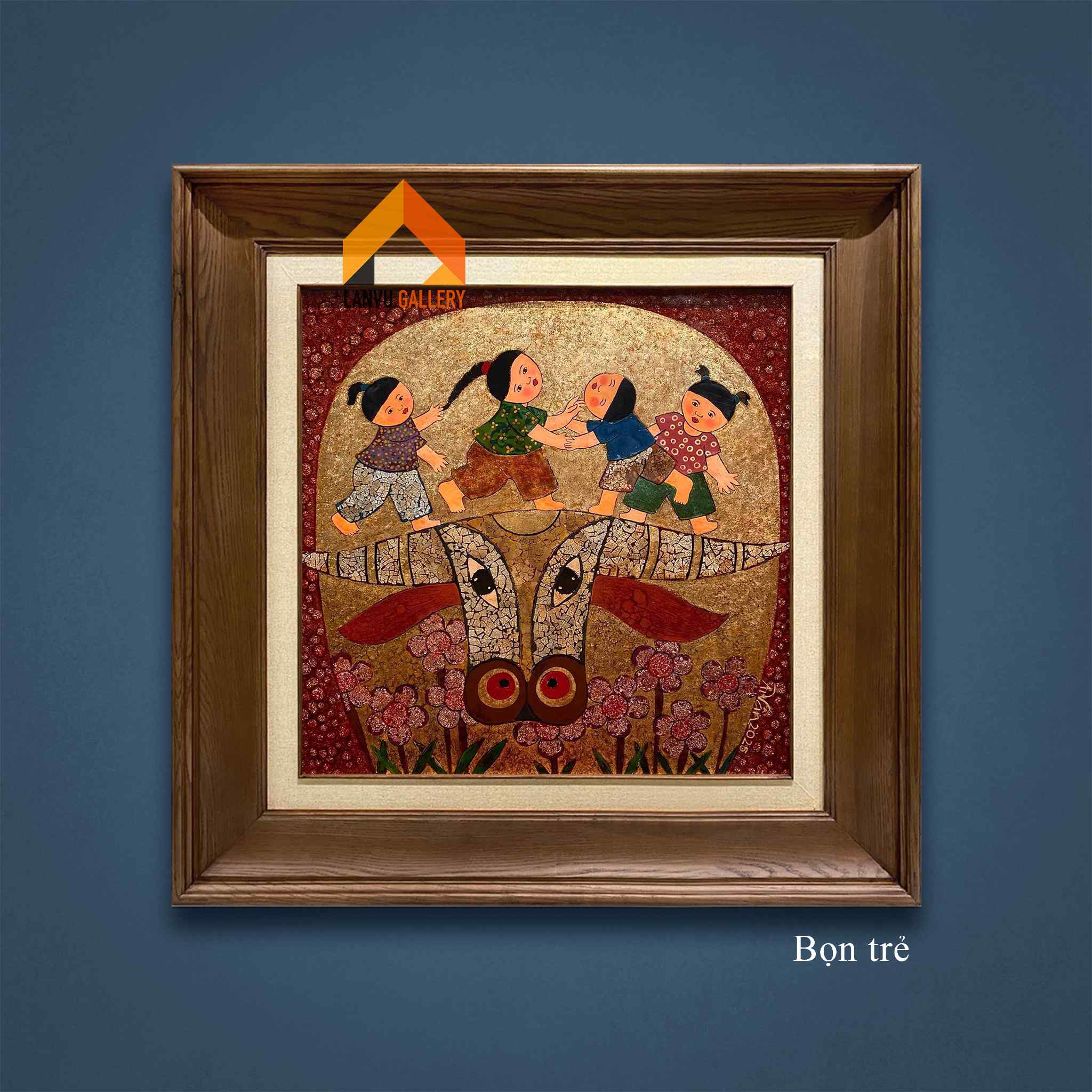 “Bọn trẻ” là tranh sơn mài sáng tác độc bản và có giấy tác quyền của họa sĩ Châu Ái Vân.