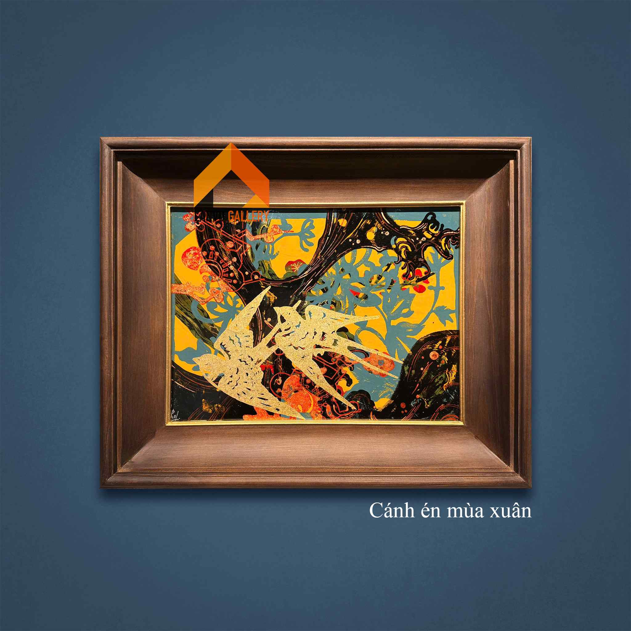 “Cánh én mùa xuân” là tranh sơn mài sáng tác độc bản của họa sĩ Trương Rốt.