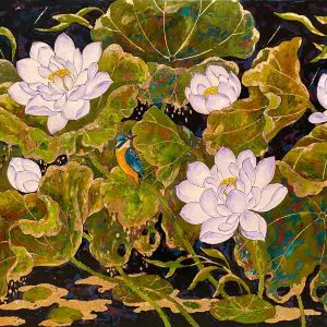 “Dưới mưa” tranh sơn mài sáng tác độc bản của họa sĩ