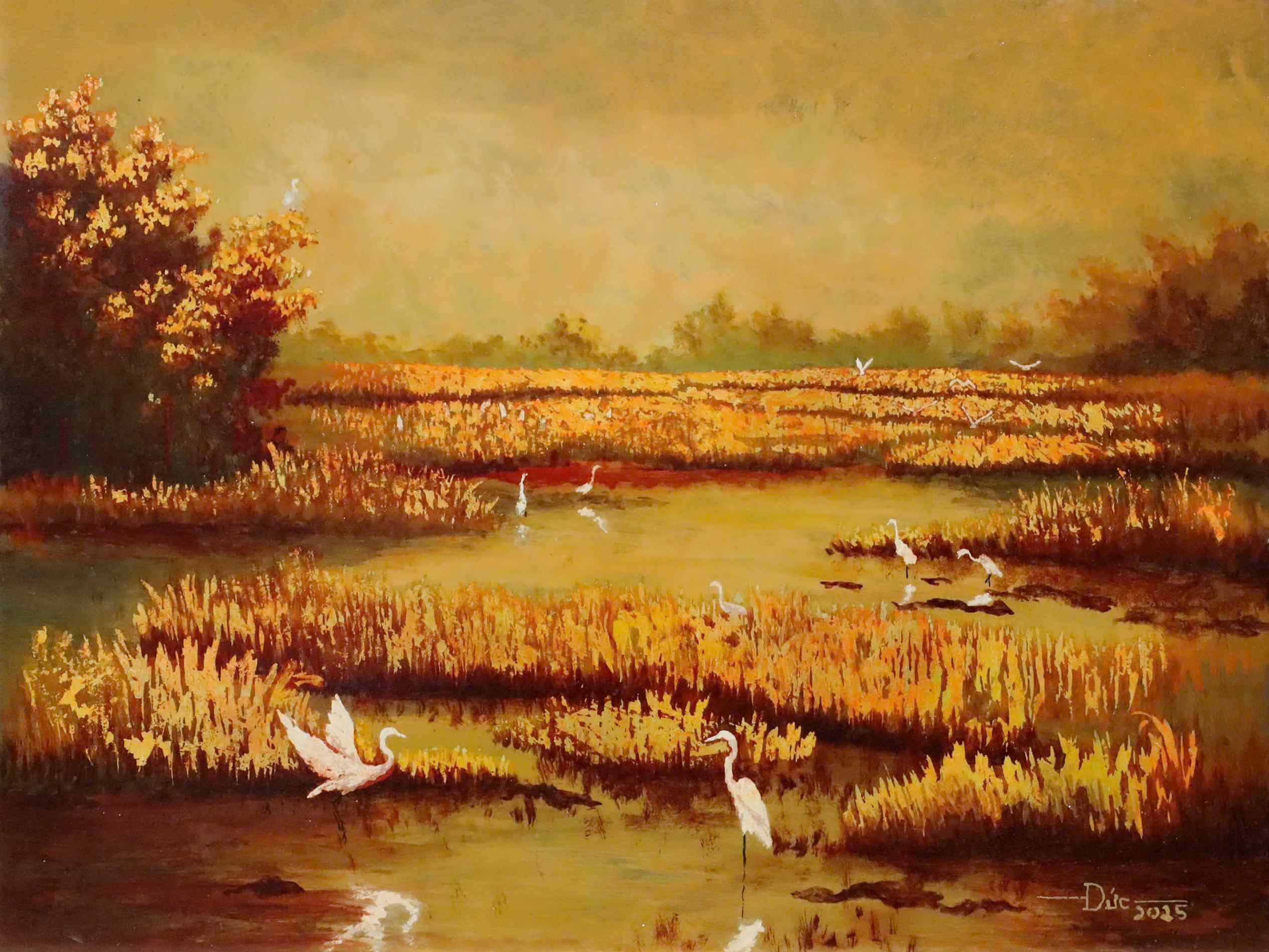 Góc quê (05) là tranh sơn mài sáng tác độc bản của họa sĩ Đinh Văn Đức