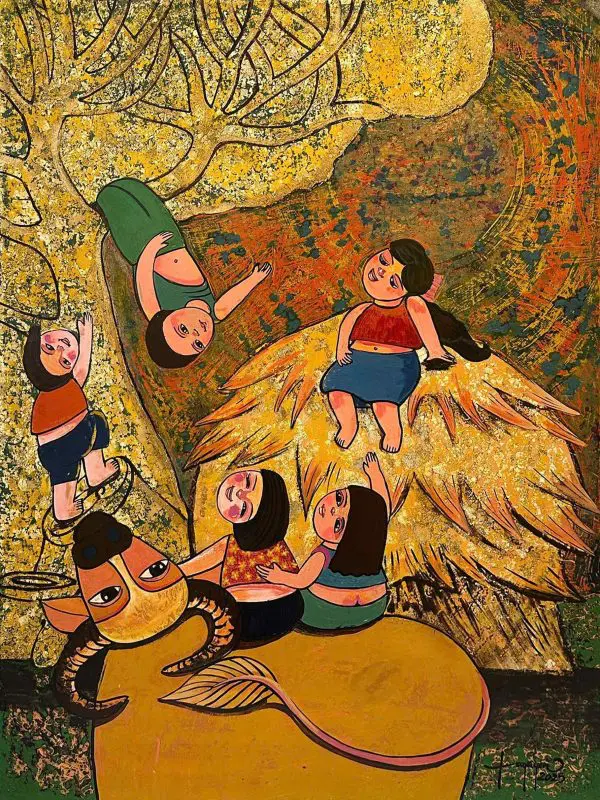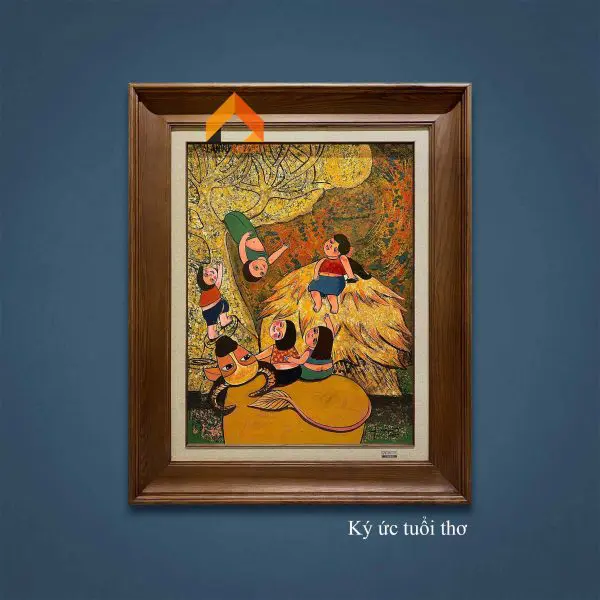 “Ký ức tuổi thơ” là tranh sơn mài sáng tác độc bản và có giấy tác quyền của họa sĩ Nguyễn Tú Quyên.