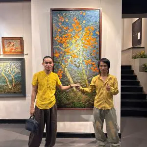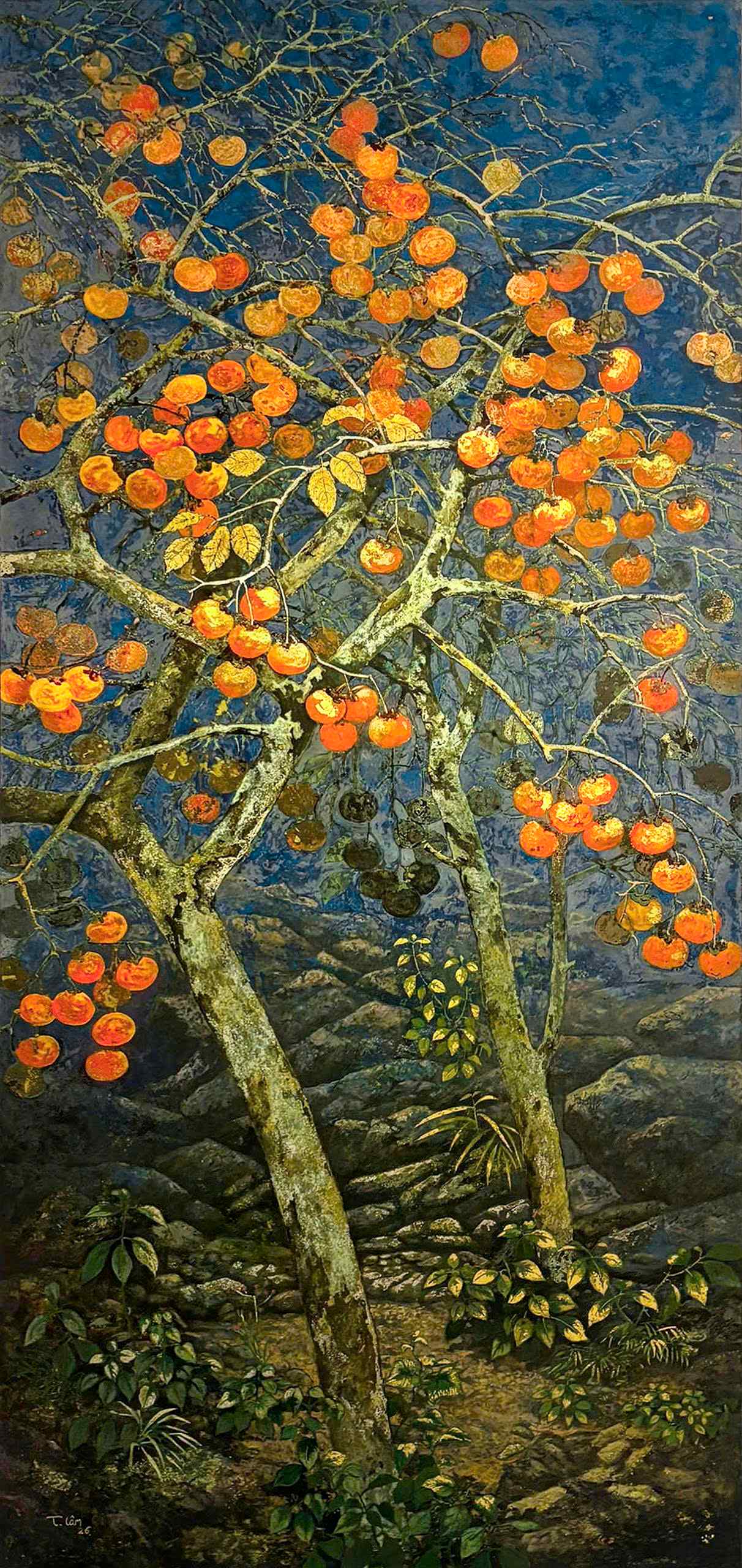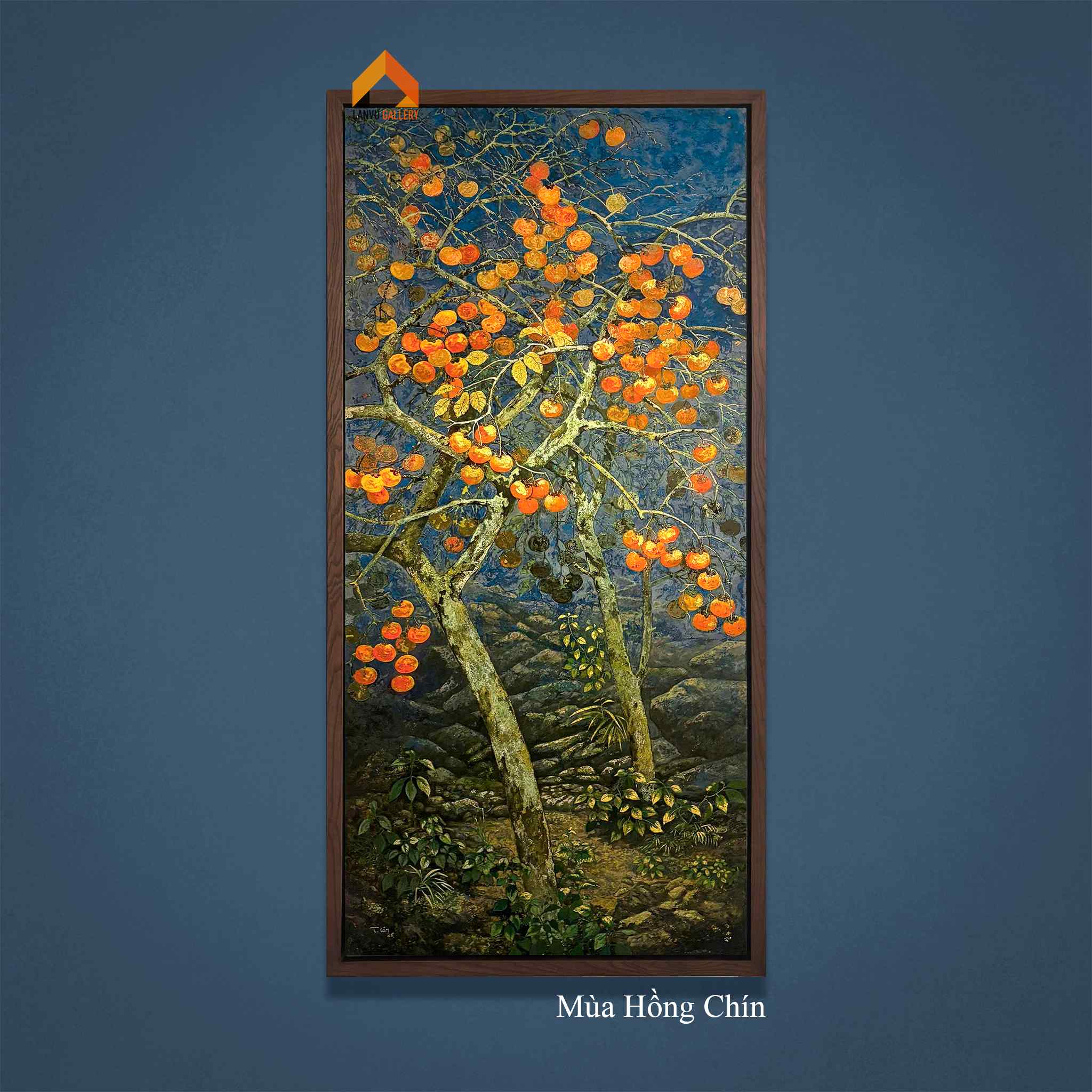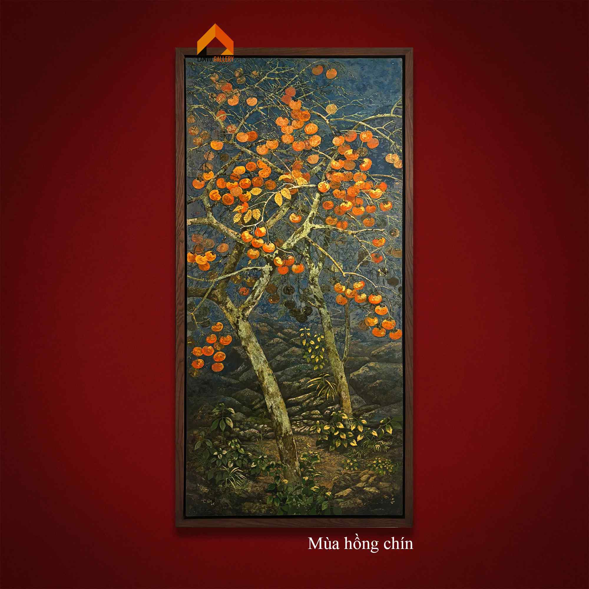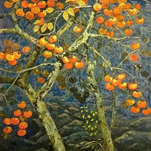 “Mùa hồng chín” là tranh sơn mài sáng tác độc bản của họa sĩ Thanh Lâm đã góp mặt trong triển lãm nhóm “Giọt sơn – Hạt Đất 2” tại nhà triển lãm Hội Mỹ thuật Việt Nam, 16 Ngô Quyền tháng 3 năm 2026.