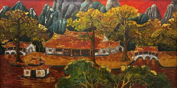 Sơn mài truyền thống giản dị, nhưng luôn có độ ngân vang âm thầm. Một bức sơn mài đẹp về Chùa Thầy – vùng đất sơn thuỷ hữu tình