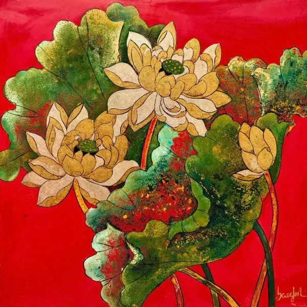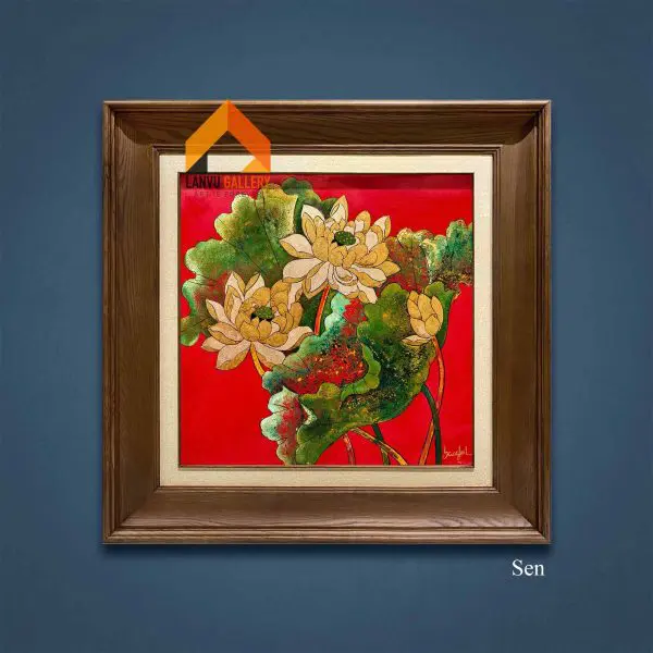 “Sen” một tác phẩm sơn mài sáng tác độc bản của họa sĩ Bảo Yến lấy cảm hứng từ biểu tượng của vẻ đẹp, sự thanh khiết và sự tái sinh của loài hoa sen.