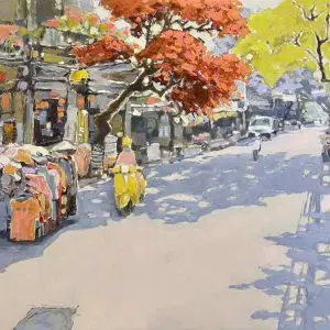 “Phố thu” là tranh sơn dầu sáng tác độc bản và có giấy tác quyền của họa sĩ Chu Đức Thắng.
