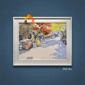 “Phố thu” là tranh sơn dầu sáng tác độc bản và có giấy tác quyền của họa sĩ Chu Đức Thắng.