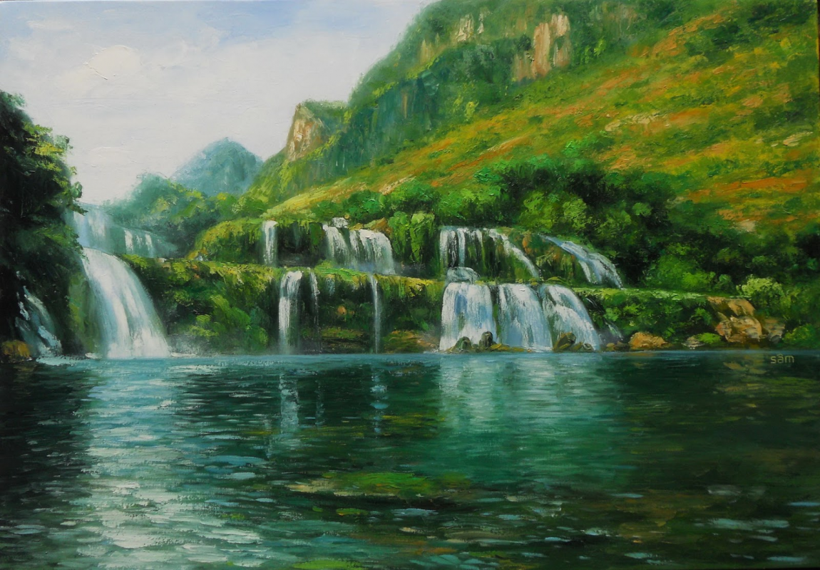 Địa chỉ vẽ tranh sơn dầu thác nước theo yêu cầu